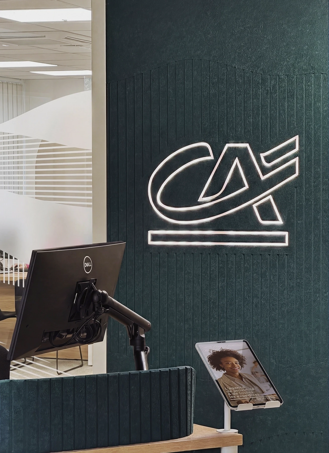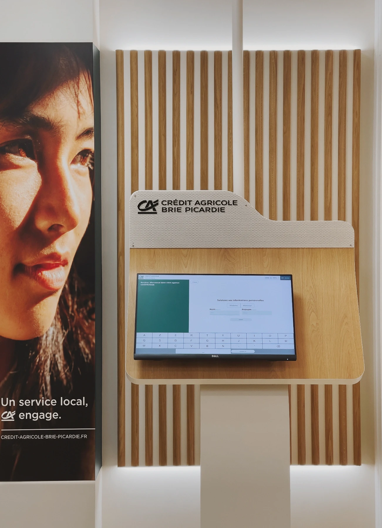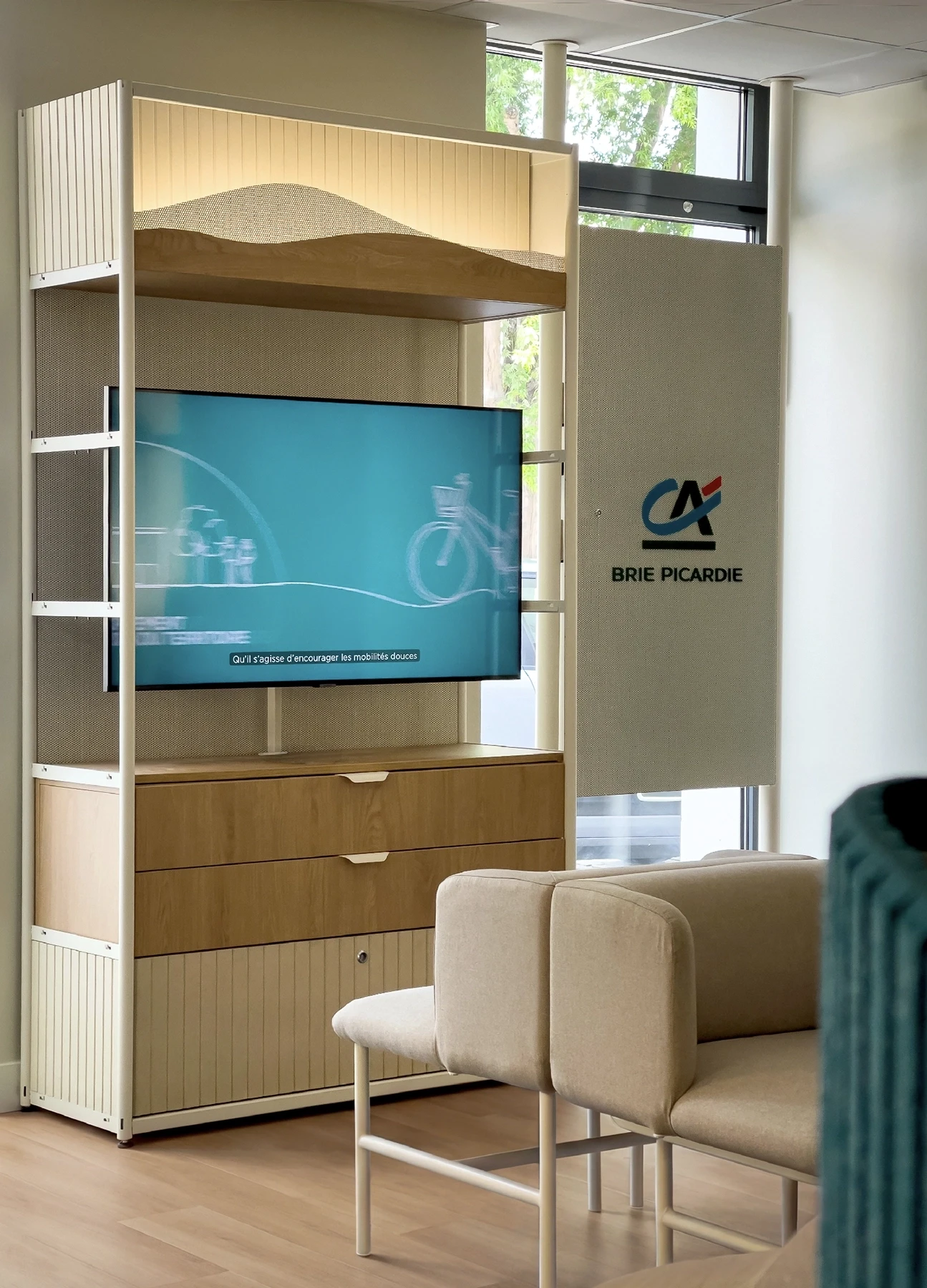 RÉVÉLER LES ACTIONS DU TERRITOIRE Tout au long du parcours, l’agence prend la parole et s’adresse à ses clients. Les modules permettent de suggérer un contenu visuel et dynamique adapté au parcours afin de suggérer un contenu pertinent à chaque instant. Communication promotionnelle, portraits de sociétaires, prises de parole locales et nationales, signalétique d’accueil… L’agence s’adresse à ses clients, elle s’exprime et reste pilotée par les équipes locales. La communication est agile, structurée et permet d’être pilotée localement par chaque directeur d’agence.