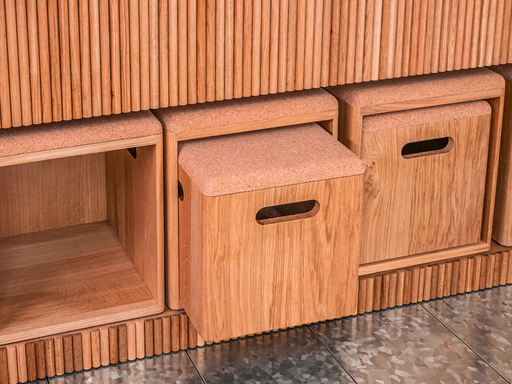 Un lieu d’expérimentation pour le retail de demain. Mobiliers entièrement modulables intégrant 25 technologies du futur totalement dédié à l’innovation Bois FSC, vernis et peintures low COV, matériaux issus du recyclage , production locale, charte environnementale avec les fournisseurs, recyclage des déchets du chantier.